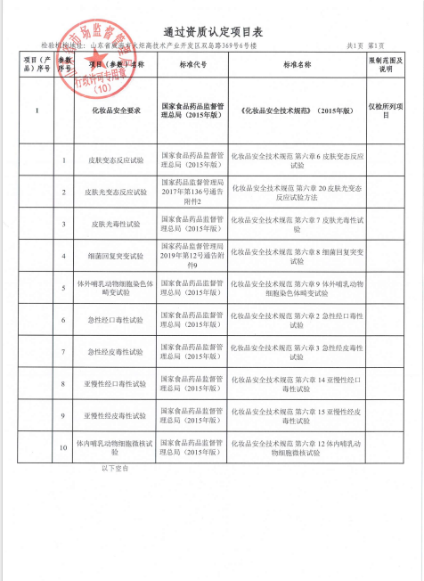 公司通過山東省市場(chǎng)監(jiān)督管理局檢驗(yàn)檢測(cè)機(jī)構(gòu)資質(zhì)認(rèn)定(CMA)擴(kuò)項(xiàng)現(xiàn)場(chǎng)評(píng)審,并于近期獲批化妝品CMA資質(zhì)認(rèn)定。